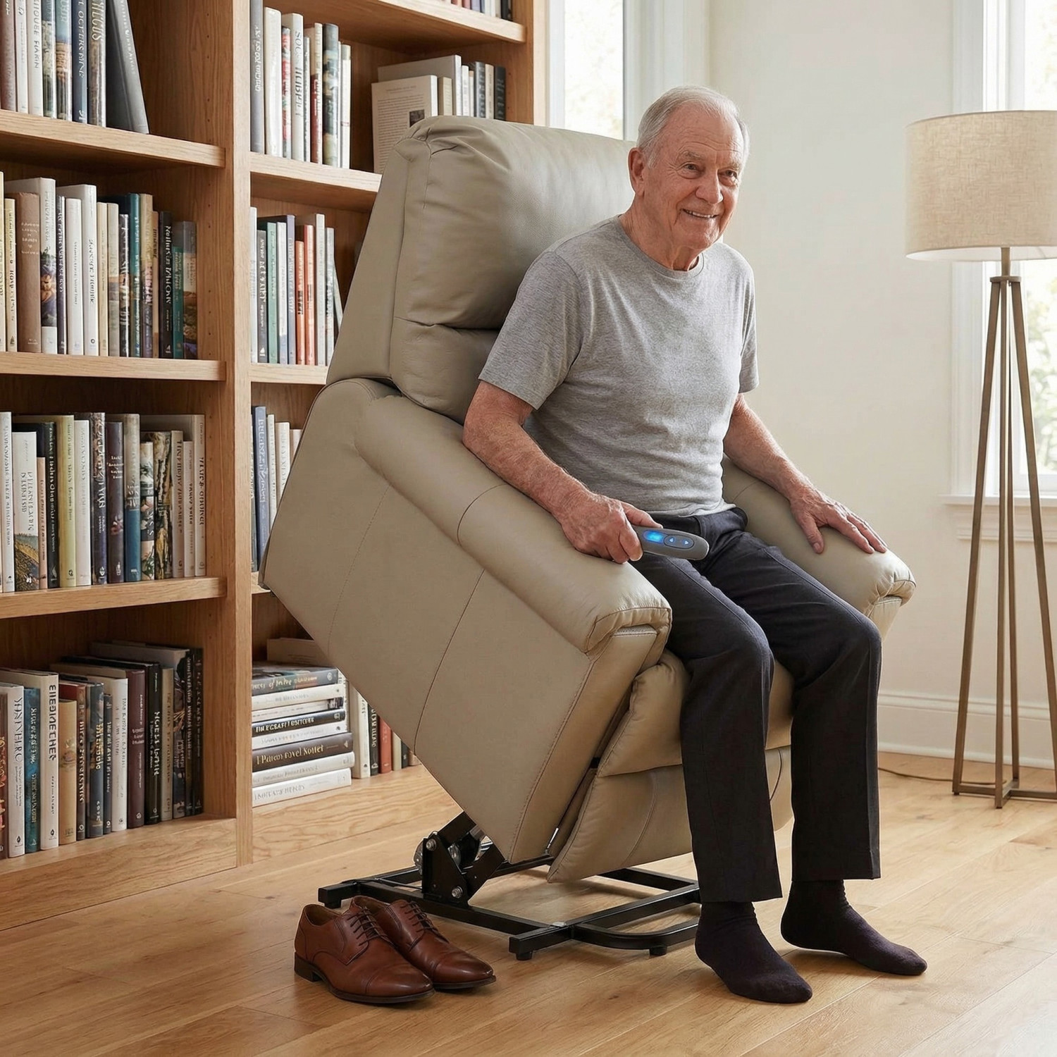A Poltrona Alpha Lift é a solução ideal para quem busca conforto, autonomia e sofisticação. Revestida em 100% Couro Legítimo, oferece alta durabilidade e facilidade de limpeza.